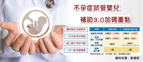 不孕症試管嬰兒 補助3.0加碼重點